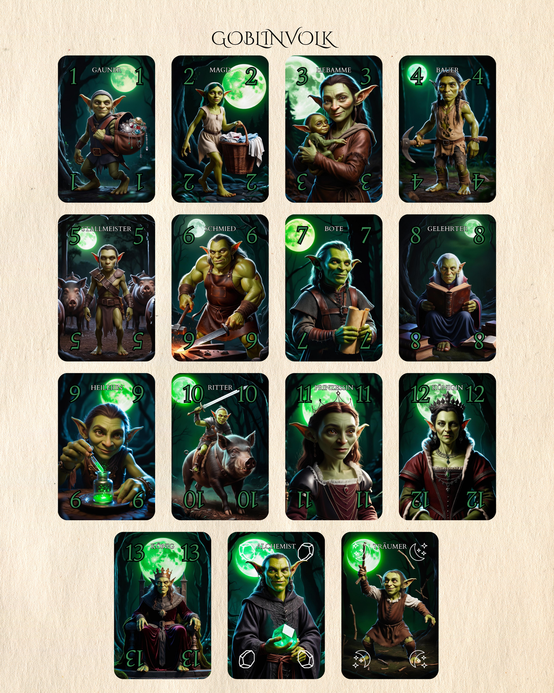 Nur einmal im Jahr – bei Vollmond und stiller Nacht – wurde das magische Kartenspiel geöffnet. Die Karten, von alten Mondwächtern, Fabelwesen und mächtigen Fähigkeiten verzaubert, erwachen dabei zum Leben. Sie flüstern ihre Kräfte, fordern Mut, List und Weitsicht von jenen, die sie führen.